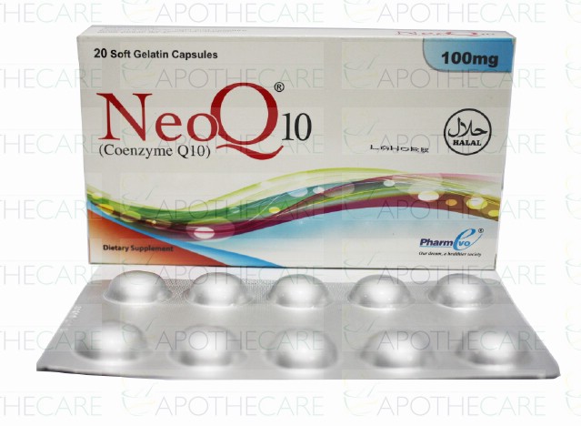 Product Name: Neo Q10 Cap 100mg 20'sProduct Form: CapsulesPack Size: 20'sMarketed By: Pharmevo (Pvt) Ltd.Generic Category: Vitamin SupplementIngredients: Coenzyme Q10 100mg
