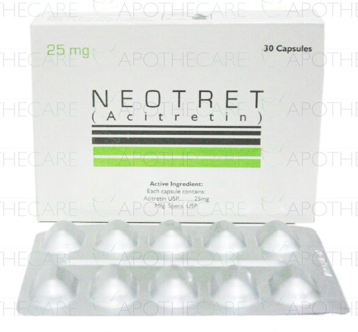 Product Name: Neotret Cap 25mg 30'sProduct Form: CapsulesPack Size: 30'sMarketed By: PHARMA HEALTH PAKISTAN (PVT.) LTDGeneric Category: Anti-PsoriasisIngredients: Acitretin