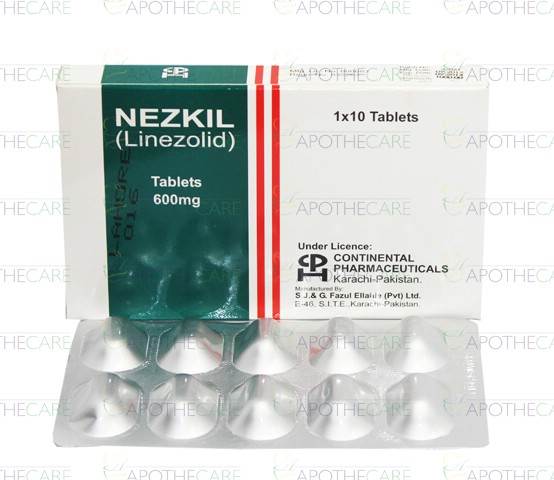 Product Name: Nezkil Tab 600mg 10'sProduct Form: TabletsPack Size: 10'sMarketed By: Continental pharmaGeneric Category: Anti-bacterial/OxazolidoneIngredients: Linezolid