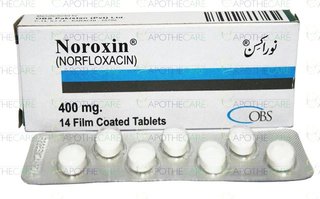 Product Name: Noroxin Tab 400mg 7'sProduct Form: TabletsPack Size: 7'sMarketed By: OBS PharmaGeneric Category: Quinolone Anti-bacterial Ingredients: Norfloxacin