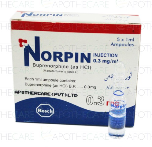 Product Name: Norpin Inj 0.3mg 5Ampx1mlProduct Form: InjectionPack Size: 5Ampx1mlMarketed By: BOSCH PHARMACEUTICALS (PVT) LTDGeneric Category: NARCOTIC ANALGESICIngredients: Buprenorphine