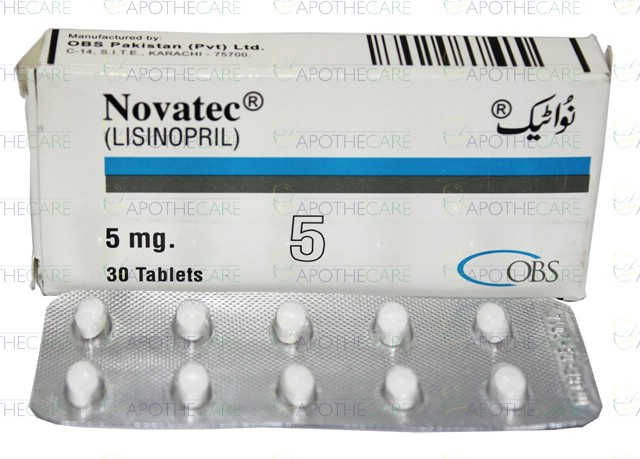Product Name: Novatec Tab 5mg 30'sProduct Form: TabletsPack Size: 30'sMarketed By: OBS PharmaGeneric Category: Anti-Hypertensive Ingredients: Lisinopril