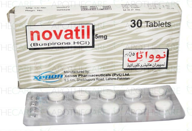 Product Name: Novatil Tab 5mg 30'SProduct Form: TabletPack Size: 30'sMarketed By: Xenon PharmaceuticalsGeneric Category: TranquilizerIngredients: Buspiron