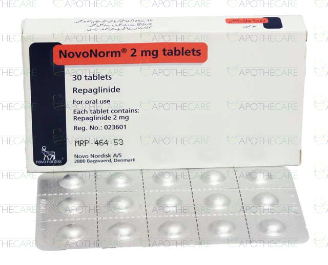 Product Name: Novonorm Tab 2mg 30'sProduct Form: TabletPack Size: 30'sMarketed By: NOVO NORDISK PHARMA PVT LTDGeneric Category: Oral HypoglycemicIngredients: Repaglinide
