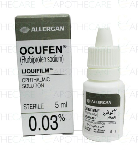 Product Name: Ocufen Ophthalmic Sol 0.03% 5mlProduct Form: Ophthalmic SolutionPack Size: 5mlMarketed By: BARRETT HODGSON PAKISTAN (PVT) LTDGeneric Category: NSAIDIngredients: Flurbiprofen Sodium
