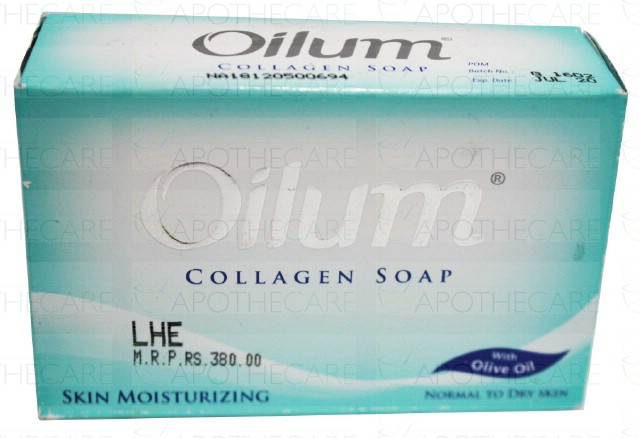 Product Name: Oilum Soap 85gmProduct Form: SoapPack Size: 85gmMarketed By: Cirin Pharmaceuticals - HattarGeneric Category: SIKIN CARE PREPARATION Ingredients: Moisturizing soap with collagen