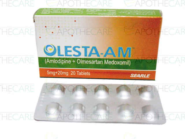 Product Name: Olesta-Am Tab 5mg/20mg 20'sProduct Form: TabletsPack Size: 20'sMarketed By: Searle (Pvt) LtdGeneric Category: Anti-HypertensiveIngredients: Amlodipine 5mg, Olmesartan 20mg