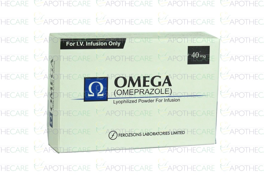 Product Name: Omega Inj 40mg 1VialProduct Form: InjectionPack Size: 1VialMarketed By: FEROZSONS LABORATORIES LTDGeneric Category: Anti-UlcerantIngredients: Omeprazole