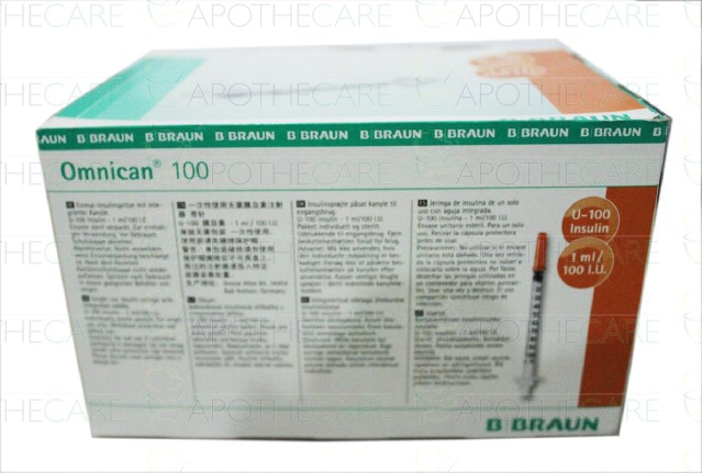 Product Name: Omnican Insulin Syringe U-100 1Ml Syringe 100'sProduct Form: Syringe Marketed By: B.BraunGeneric Category: Surgical Products