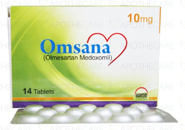 Product Name: Omsana Tab 10mg 14'sProduct Form: TabletsPack Size: 14'sMarketed By: Hilton Pharma (Pvt) Ltd.Generic Category: Anti-HypertensiveIngredients: Olmesartan Medoxomil