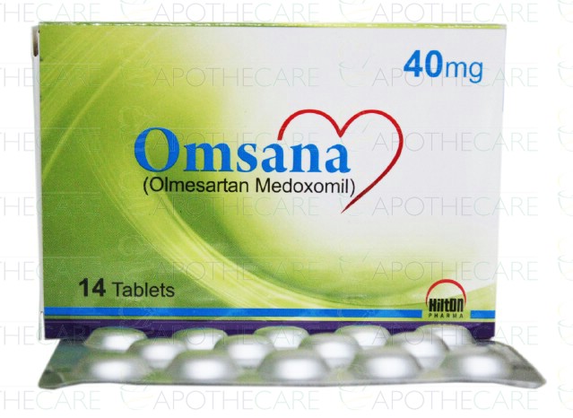 Product Name: Omsana Tab 40mg 14'sProduct Form: TabletsPack Size: 14'sMarketed By: Hilton Pharma (Pvt) Ltd.Generic Category: Anti-HypertensiveIngredients: Olmesartan Medoxomil