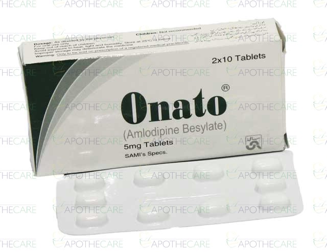 Product Name: Onato Tab 5mg 2x10'sProduct Form: TabletsPack Size: 2x10'sMarketed By: SAMI PHARMACEUTICALSGeneric Category: ANTI-HYPERTENSIVEIngredients: Amlodipine Besylate