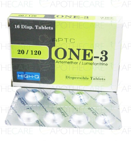 Product Name: One-3 Tab 20mg/120mg 16'sProduct Form: TabletsPack Size: 16'sMarketed By: High Q PHARMACEUTICALSGeneric Category: Anti-MalarialIngredients: Artemether 20mg, Lumefantrine 120mg