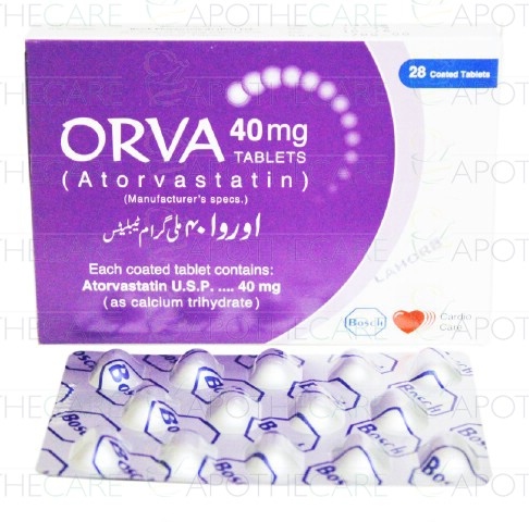 Product Name: Orva Tab 40mg 2x14'sProduct Form: TabletPack Size: 2x14'sMarketed By: BOSCH PHARMACEUTICALS (PVT) LTDGeneric Category: STATINSIngredients: Atorvastatin