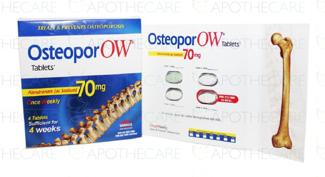 Product Name: Osteopor OW Tab 70mg 4'sProduct Form: TabletsPack Size: 1x4'sMarketed By: Werrick PharmaceuticalsGeneric Category: BisphosphonatesIngredients: Alendronate Sodium