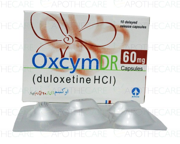 Product Name: OXCYM DR Cap 60mg 10'sProduct Form: CapsulePack Size: 10'sMarketed By: ATCO LABORATORIES (PVT) LTDGeneric Category: Anti-Depressant Ingredients: DULOXETINE HCL