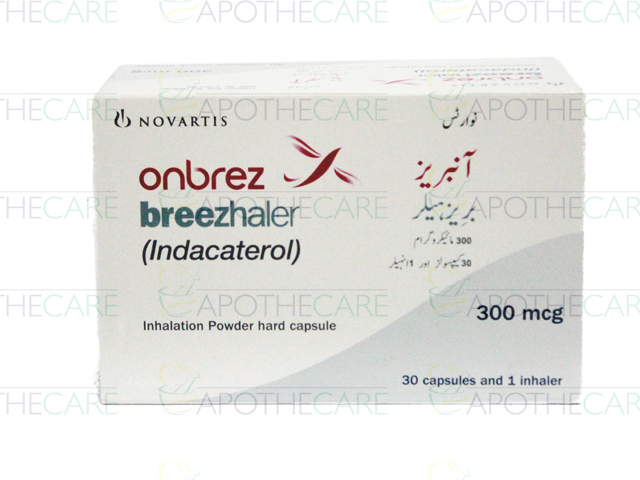 Product Name: Package of Onbrez Breezhaler Cap 300mcg 30's + 1 Pack Onbrez Breezhaler Cap 300mg 30's FOCProduct Form: CapsulesPack Size: 30's + InhalerMarketed By: NOVARTIS PHARMA PAKISTAN LTDGeneric Category: Asthma/COPDIngredients: Indacaterol maleate