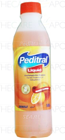 Product Name: Peditral Orange Liq 500mlProduct Form: LiquidPack Size: 500mlMarketed By: Searle Pakistan LimitedGeneric Category: Rehydration FluidsIngredients: Oral Rehydration Salt