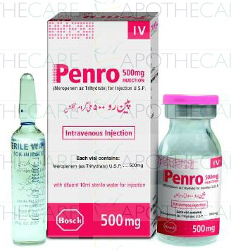 Product Name: Penro Inj 500mg 1VialProduct Form: InjectionPack Size: 1 VialMarketed By: BOSCH PHARMACEUTICALS (PVT) LTDGeneric Category: CarbapenumsIngredients: Meropenem