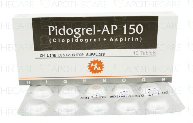Product Name: Pidogrel-AP Tab 75mg/150mg 10'sProduct Form: TabletsPack Size: 10'sMarketed By: HIGHNOON LABORATORIES LTD.Generic Category: Anti-Platelet AggregationIngredients: Clopidogrel Bisulphate 75mg, Aspirin 150mg