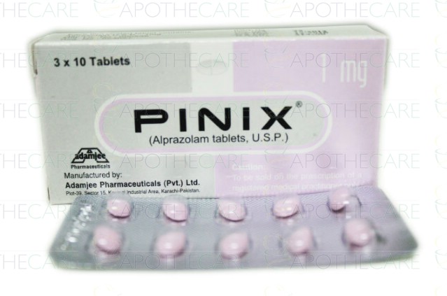 Product Name: Pinix Tab 1mg 3x10'sProduct Form: TabletsPack Size: 3x10'sMarketed By: Adamjee Pharma ServicesGeneric Category: BenzodiazepineIngredients: Alprazolam
