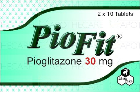 Product Name: PIOFIT Tab 30mg 2x10'sProduct Form: TabletsPack Size: 2x10'sMarketed By: SCHAZOO ZAKA (PVT) LTDGeneric Category: ORAL HYPOGLYCEMIC Ingredients: Pioglitazone