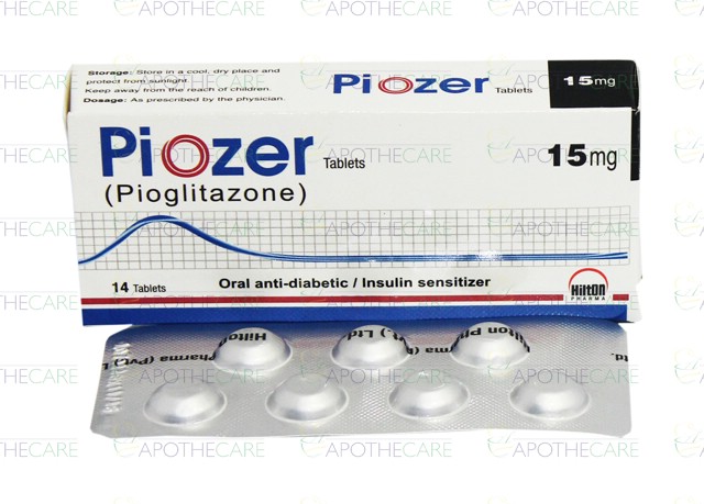 Product Name: Piozer Tab 15mg 14'sProduct Form: TabletsPack Size: 14'sMarketed By: Hilton Pharma (Pvt) Ltd.Generic Category: Oral Hypoglycemic Ingredients: Pioglitazone