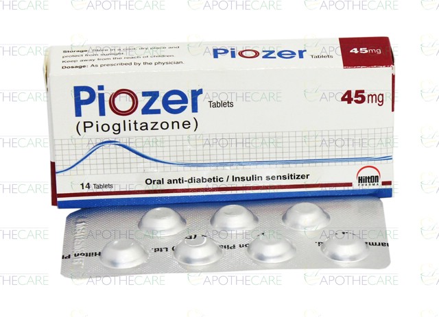 Product Name: Piozer Tab 45mg 14'sProduct Form: TabletsPack Size: 14'sMarketed By: Hilton Pharma (Pvt) Ltd.Generic Category: Oral Hypoglycemic Ingredients: Pioglitazone