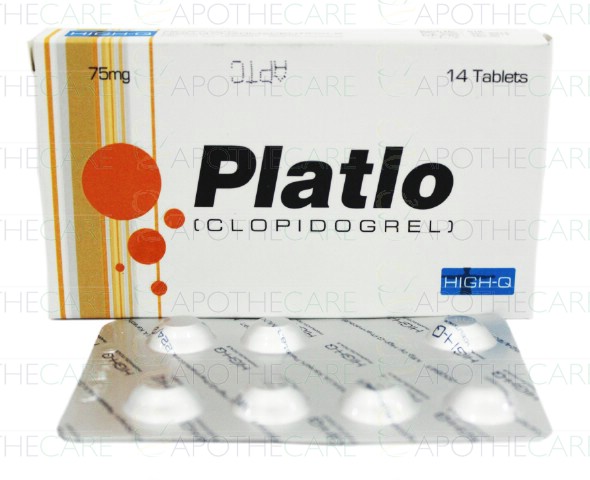 Product Name: Platlo Tab 75mg 14'sProduct Form: TabletsPack Size: 14'sMarketed By: High Q PHARMACEUTICALSGeneric Category: Anti-Platelet AggregationIngredients: Clopidogrel