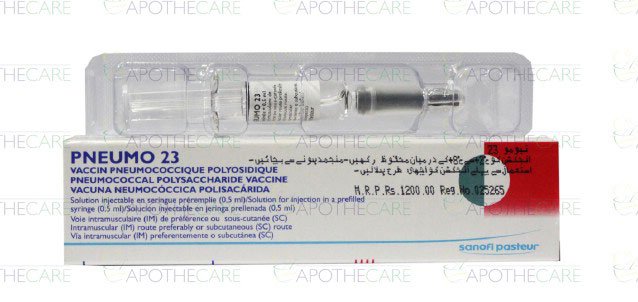 Product Name: Pneumo 23 Inj 1PFSx0.5mlProduct Form: InjectionPack Size: 1PFSx0.5mlMarketed By: Sanofi PasteurGeneric Category: VaccineIngredients: Pneumococcal vaccineStorage Condition: Store at 2 - 80C (Do not freeze)