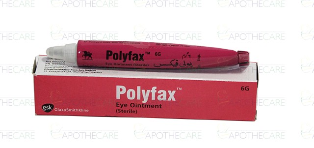 Product Name: Polyfax Eye Oint 6gmProduct Form: OintmentPack Size: 6gmMarketed By: Glaxosmithkline Pakistan LimitedGeneric Category: Anti-InfectiveIngredients: Each gram contains: Polymyxin B 10000IU, Bacitracin 500IU