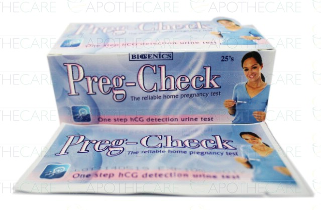 Product Name: Preg-Check strips 25'sProduct Form: StripsPack Size: 25'sMarketed By: BioGenics Pakistan(Pvt) Ltd
