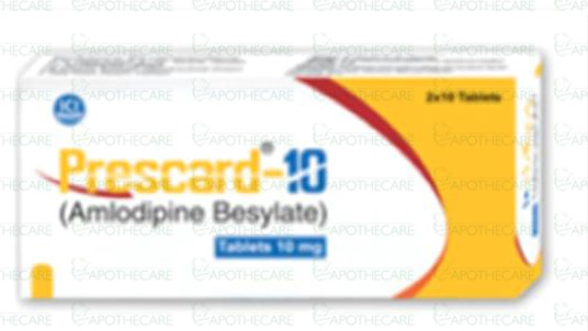 Product Name: Prescard-10 Tab 10mg 20'sProduct Form: TabletsPack Size: 20'sMarketed By: ICI PAKISTAN LTD Generic Category: Anti-Hypertensive Ingredients: Amlodipine Besylate