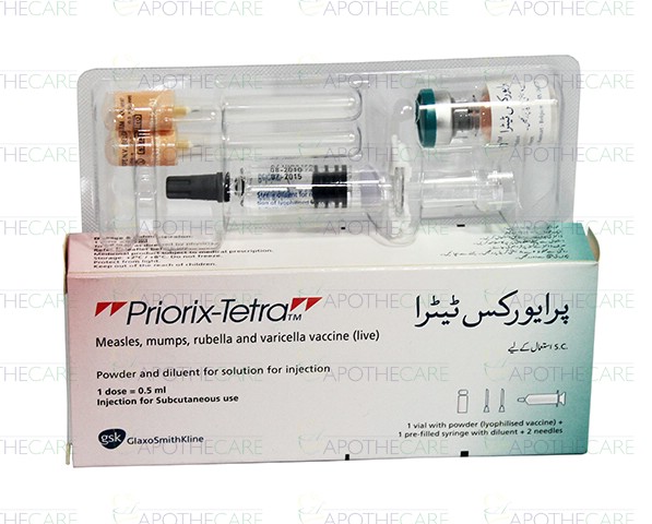 Product Name: Priorix Tetra Inj 1VialProduct Form: InjectionPack Size: 1VialMarketed By: GLAXOSMITHKLINE Generic Category: Vaccine Ingredients: Measles, Mumps, Rubella and Varicella Vaccine