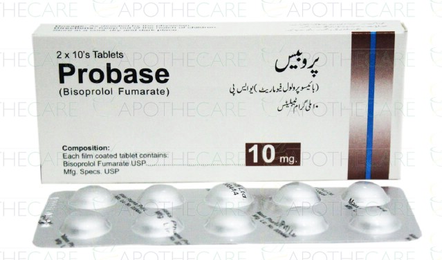 Product Name: Probase Tab 10mg 2x10'sProduct Form: TabletsPack Size: 20's Marketed By: MASS PHARMAGeneric Category: Anti-HypertensiveIngredients: Bisoprolol Fumarate