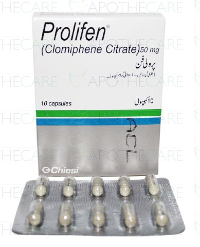 Product Name: Prolifen Cap 50mg 10'sProduct Form: CapsulesPack Size: 10'sMarketed By: Chiesi Pharmaceuticals (Pvt) LtdGeneric Category: Hormonal ProductsIngredients: Clomiphene Citrate