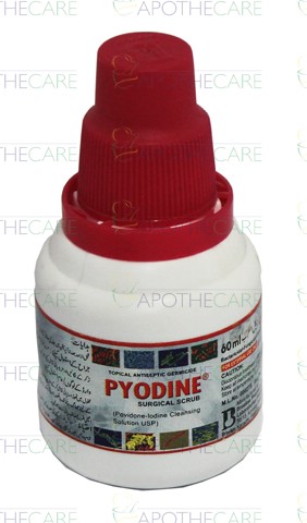 Product Name: Pyodine Surgical Scrub Sol 7.5% 60mlProduct Form: SolutionPack Size: 60mlMarketed By: BROOKES PHARMACEUTICAL LABS (PAKISTAN) LTDGeneric Category: Anti-SepticIngredients: Povidone-Iodine