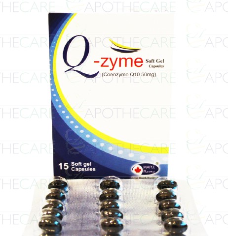 Product Name: Q-Zyme Cap 50mg 15'sProduct Form: CapsulesPack Size: 30'sMarketed By: Maple Pharmaceuticals (Pvt) Ltd.Generic Category: Anti-oxidantIngredients: Coenzyme Q10 (Ubidecarenone)