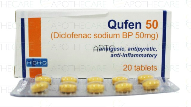 Product Name: Qufen Tab 50mg 20'sProduct Form: TabletsPack Size: 20'sMarketed By: High Q PHARMACEUTICALSGeneric Category: NSAIDIngredients: Diclofenac Sodium