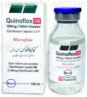 Product Name: Quinoflox DS Inf 400mg 1Vialx100mlProduct Form: InfusionPack Size: 1Vialx100mlMarketed By: BOSCH PHARMACEUTICALS (PVT) LTDGeneric Category: QUINOLONES ANTI-BACTERIALIngredients: Ciprofloxacin