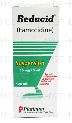 Product Name: Reducid Susp 10mg/5ml 120mlProduct Form: SuspensionPack Size: 120mlMarketed By: Platinum Pharmaceuticals (Pvt) LtdGeneric Category: ANTI-ULCERANTIngredients: Famotidine