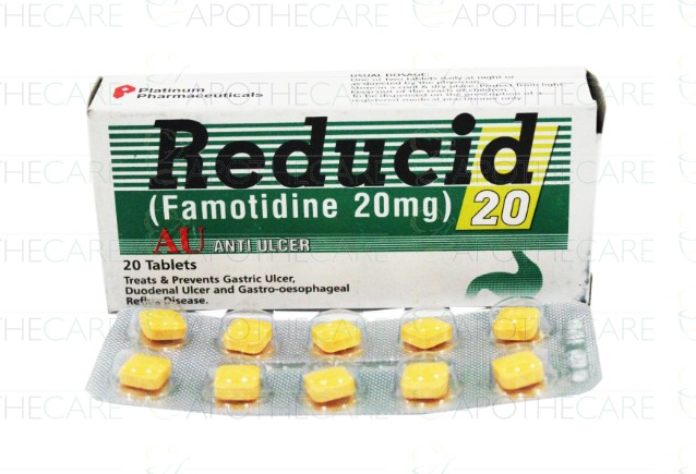 Product Name: Reducid Tab 20mg 2x10'sProduct Form: TabletPack Size: 2x10'sMarketed By: Platinum Pharmaceuticals (Pvt) LtdGeneric Category: ANTI-ULCERANTIngredients: Famotidine