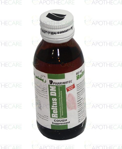 Product Name: Reltus DM Syp 60mlProduct Form: SyrupPack Size: 60mlMarketed By: PharmatecGeneric Category: Cold Preparation Without Anti-Infective Ingredients: Each 5ml contains: Dextromethorphan Hydrobromide 10mg, Chlorpheniramine maleate 2mg, Pseudoephedrine HCl 30mg