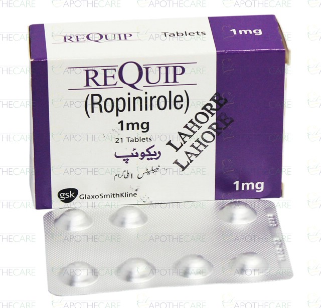 Product Name: REQUIP Tab 1mg 21'sProduct Form: TabletsPack Size: 21'sMarketed By: Glaxosmithkline Pakistan LimitedGeneric Category: ANTI-PARKINSONISM Ingredients: Ropinirole
