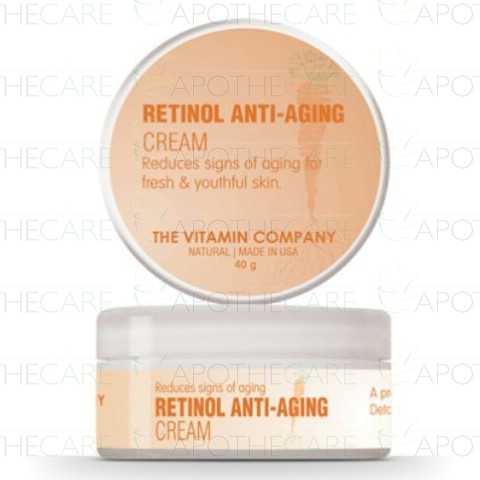 Product Name: Retinol Anti-Aging Cream 40gmProduct Form: CreamPack Size: 40gmMarketed By: The Vitamin CompanyGeneric Category: Skin care preparations Ingredients: herbal blend for anti-aging