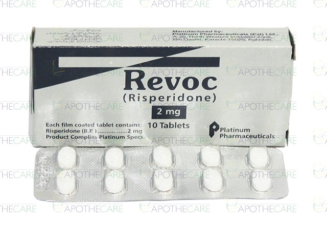 Product Name: Revoc Tab 2mg 10'sProduct Form: TabletsPack Size: 10'sMarketed By: Platinum Pharmaceuticals (Pvt) LtdGeneric Category: PSYCHOSISIngredients: Risperidone