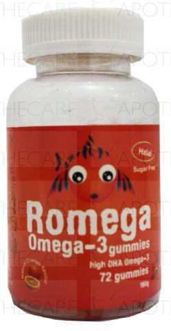 Product Name: Romega Gummies 72'sProduct Form: GummiesPack Size: 72'sMarketed By: Genetics PharmaceuticalsGeneric Category: Nutritional SupplementIngredients: Omega-3 High DHA
