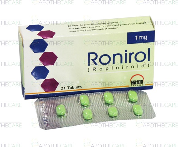 Product Name: Ronirol Tab 1mg 21'sProduct Form: TabletsPack Size: 21'sMarketed By: Hilton Pharma (Pvt) Ltd.Generic Category: Anti-ParkinsonismIngredients: Ropinirole