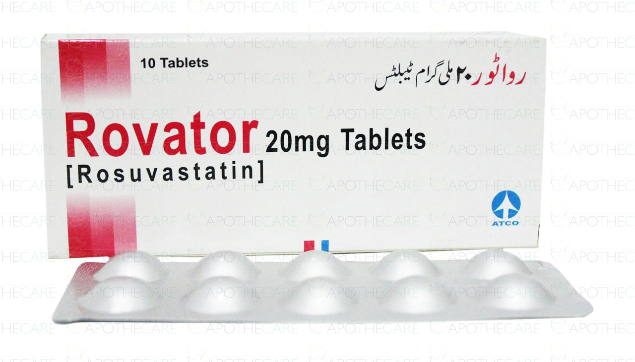 Product Name: ROVATOR Tab 20mg 1x10'sProduct Form: TabletsPack Size: 1x10'sMarketed By: ATCO LABORATORIES (PVT) LTDGeneric Category: StatinsIngredients: Rosuvastatin