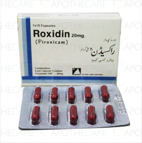 Product Name: Roxidin Cap 20mg 10'sProduct Form: CapsulesPack Size: 10'sMarketed By: Rakaposhi PharmaceuticalsGeneric Category: NSAIDIngredients: Piroxicam